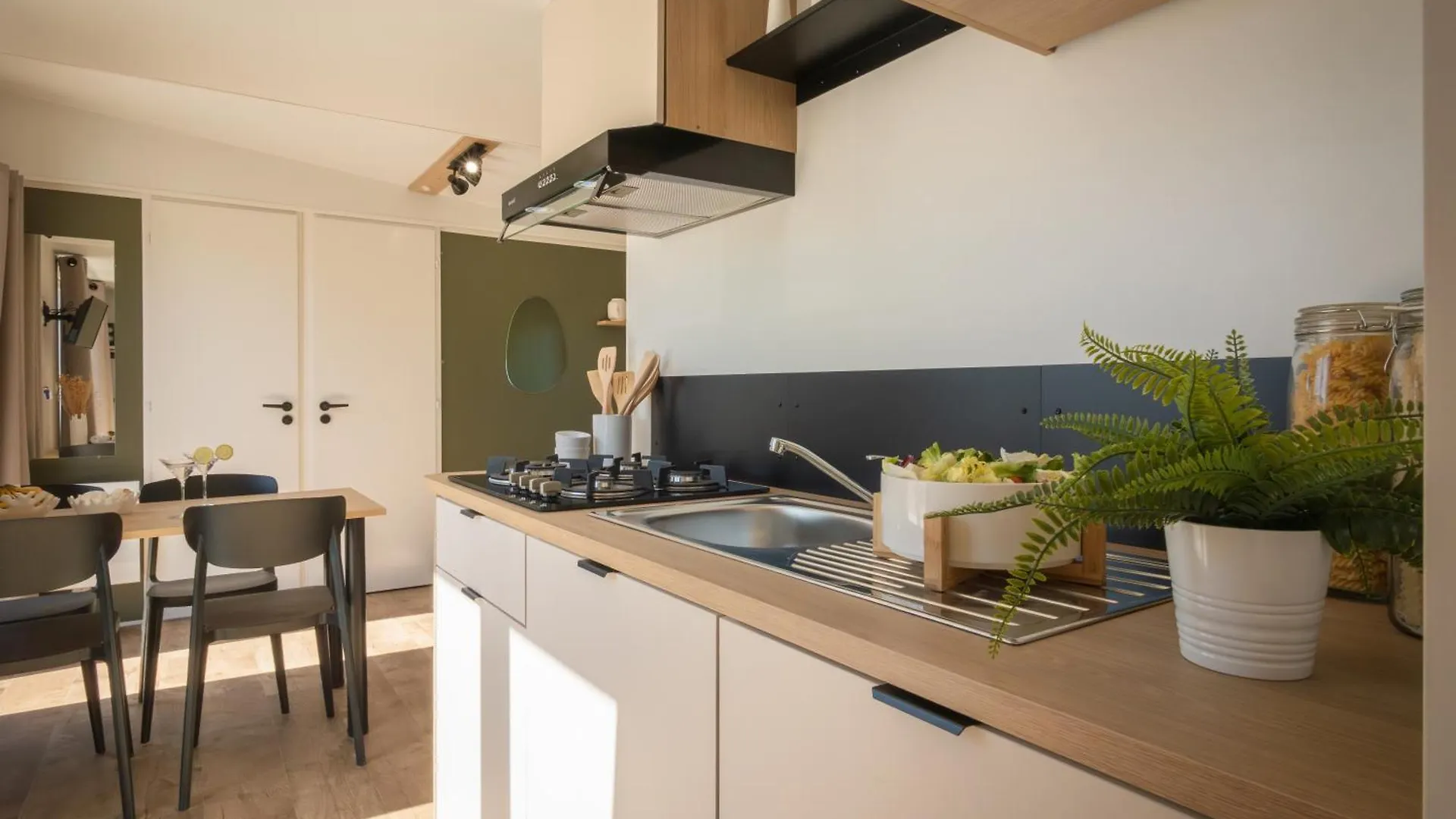 Cada habitación está equipada con una cocina completa y una terraza.